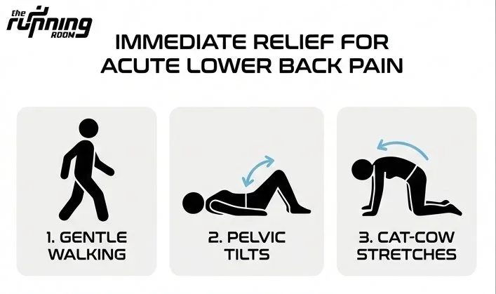 Gentle movement, the opposite direction technique, and professional physiotherapy assessment provide the fastest relief. Avoid prolonged bed rest, which can worsen symptoms.