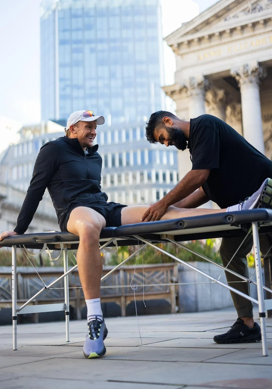 Day 3:The build-up of the running, 100km up to this point, was starting to take effect. An early morning physio session outside Upminster station worked on the quads. As we approached Blackfriars, we made a shared decision to change shoes as the Tib. post tendon was starting to rear its head. These changes proved effective, as we focused on staying hydrated and cool on the hottest day of the year.